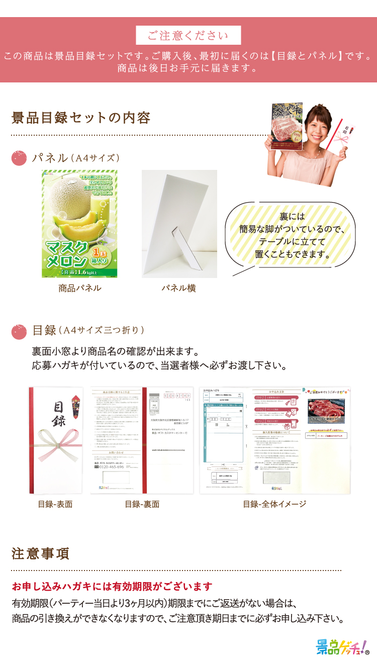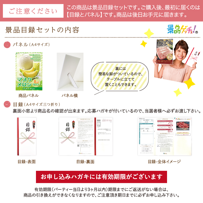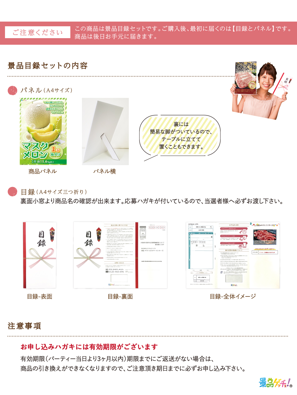 ●セット内容 / 目録ハガキ・景品発表 A4パネル・商品一覧表・個人情報保護シール